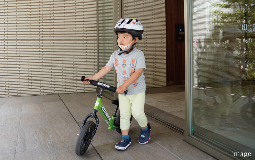 人・自転車・バイク・車、それぞれに専用の出入口を設けた歩車分離設計を採用。動線を分けることで、安全性と快適性を両立しました。