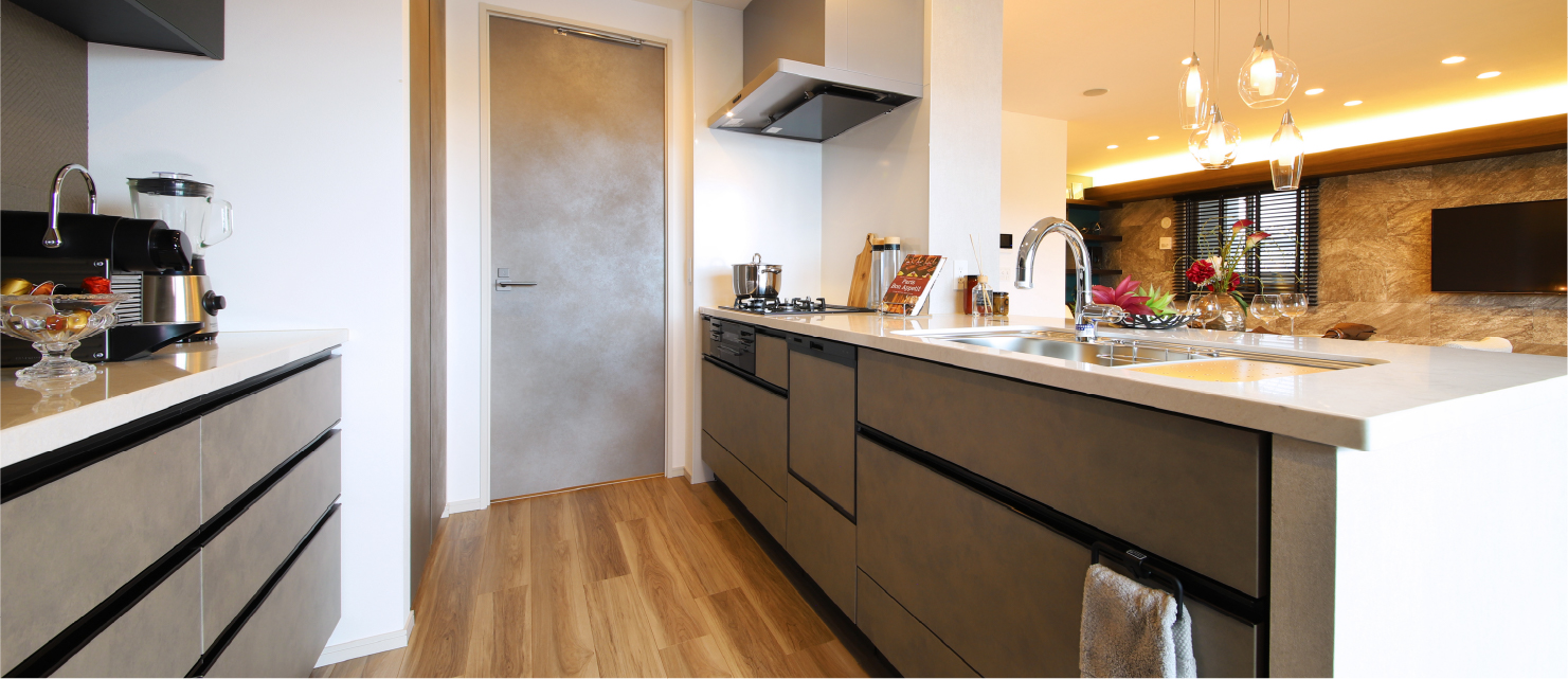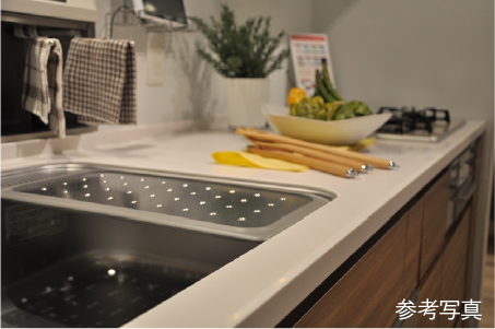 大きな鍋も洗える奥行きワイドなサイズで調理もスペースもゆったり。また水やお湯を勢いよく出したときに響くシンクの音を抑制。静かで快適にシンクを使える静音シンクを採用しています。