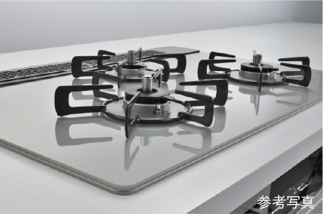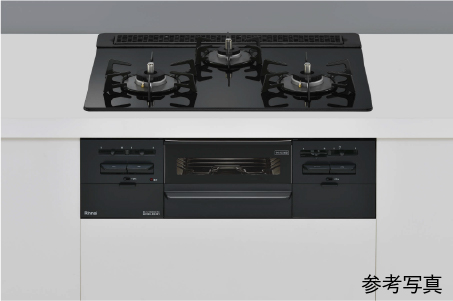 フレームレスガラスがシャープで洗練された印象に。サッとひと拭きで簡単にお手入れできる優れもの。便利な3口バーナーを搭載。