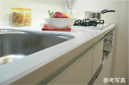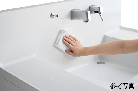 耐久性や耐熱性に優れたアクリル系人工大理石を採用。熱や薬品にも強いため、しつこい汚れも洗剤、クレンザー等で簡単に除去できます。