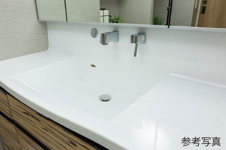 アクリル人造大理石の天板とボウルの継ぎ目がない一体型カウンタートップを採用。毎日のお掃除も簡単です。