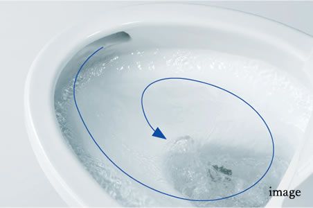 渦を巻くような「トルネード洗浄」で便器の中をぐるりとしっかり洗浄。少ない水でも効率よく洗います。