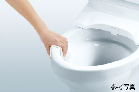 ボウルに向かった返しがない新しいフチなし形状。汚れが隠れてみえない部分がないので、トイレ掃除がとってもラクにできます。