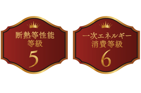 住まいの省エネ性能を表す、温熱環境・エネルギー消費量に関する性能。このうち、断熱化によって使用するエネルギーがどれだけ削減できるかを計る等級が『断熱等性能等級』です。また住宅の1年間の予想されるエネルギー消費量を数値化した指標の「一次エネルギー消費等級』。この等級が高いほど消費エネルギーの節約や住空間の快適性も高くなります。「リコット東岡崎フロント」は設計性能評価において、断熱性能等級5、一次エネルギー消費等級6を取得済。